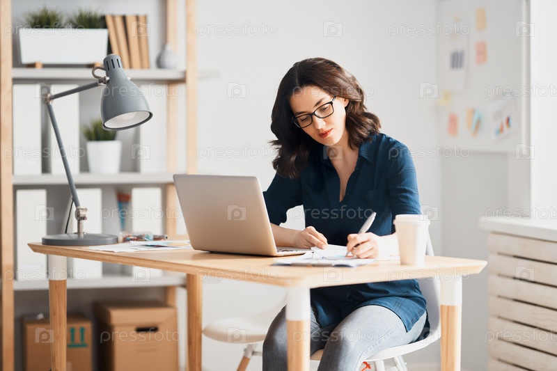 Женщина работает на ноутбуке