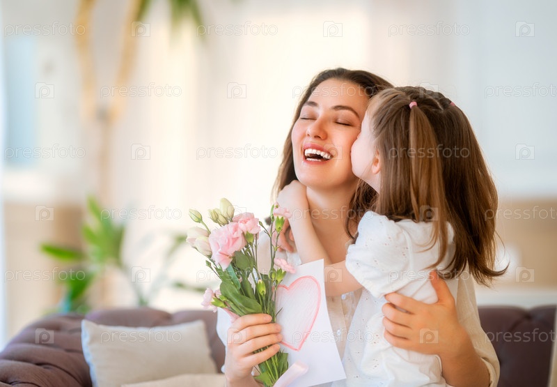 Дочь дарит матери букет цветов