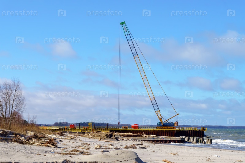 Строительные работы на берегу моря. Прокладка нефтепровода и газопроводов