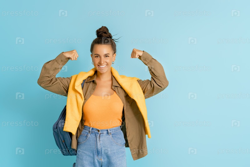 Молодая женщина на ярком цветном фоне