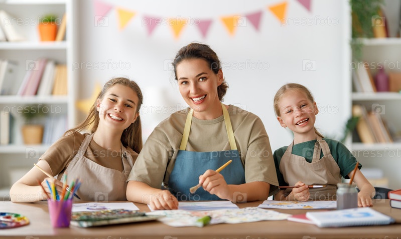 Дети и учитель в художественном классе