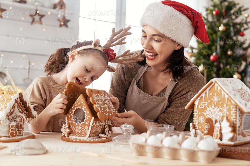 Семья готовит пряничный домик