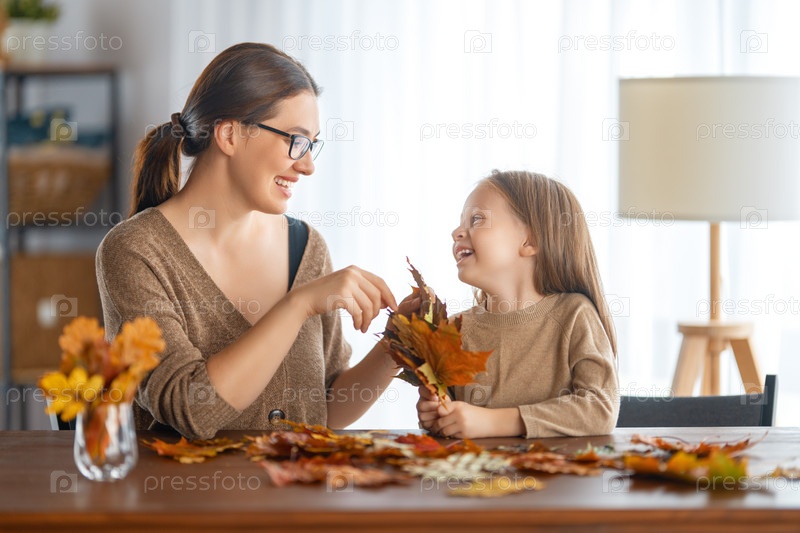 Семья занимается осенним декором
