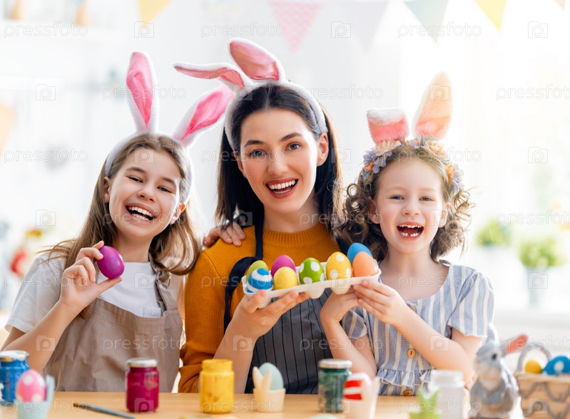Счастливая семья готовится к Пасхе