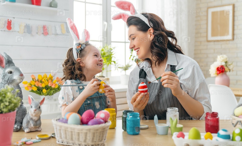 Счастливая семья готовится к Пасхе