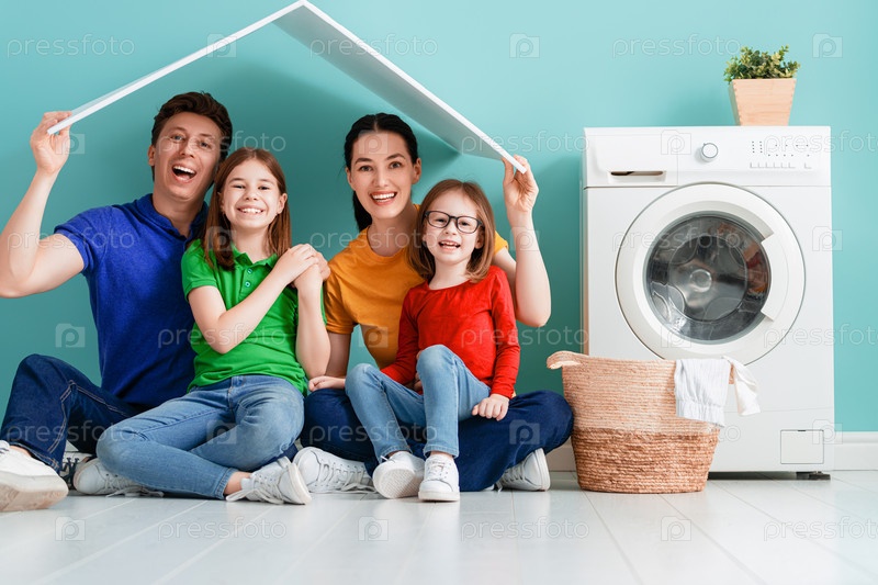 Семья стирает