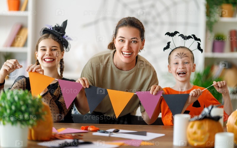 Счастливая семья готовится к Хэллоуину