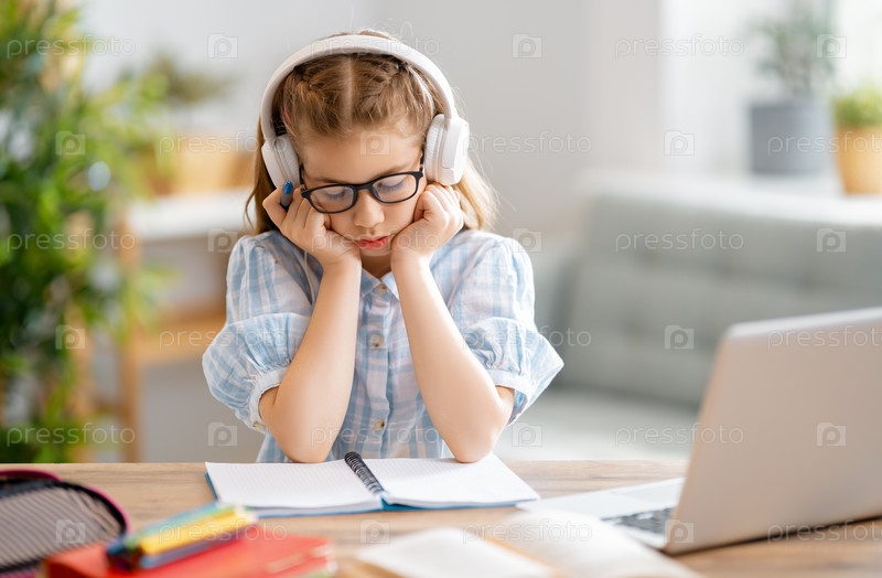 Девушка делает домашнее задание или онлайн-обучение