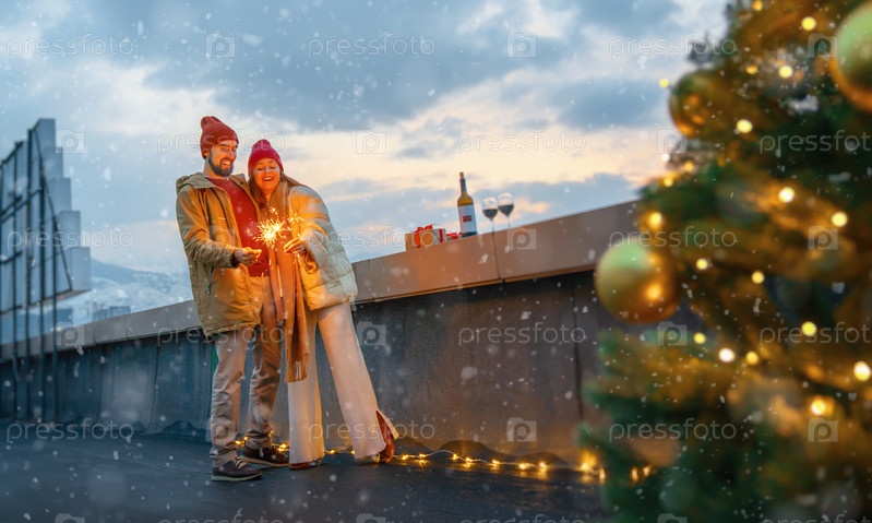 Пара празднует Рождество