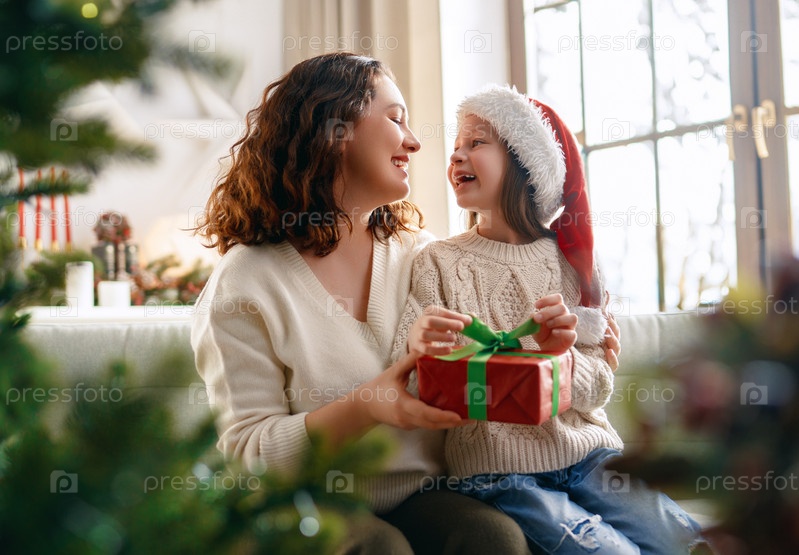 Семья празднует Рождество