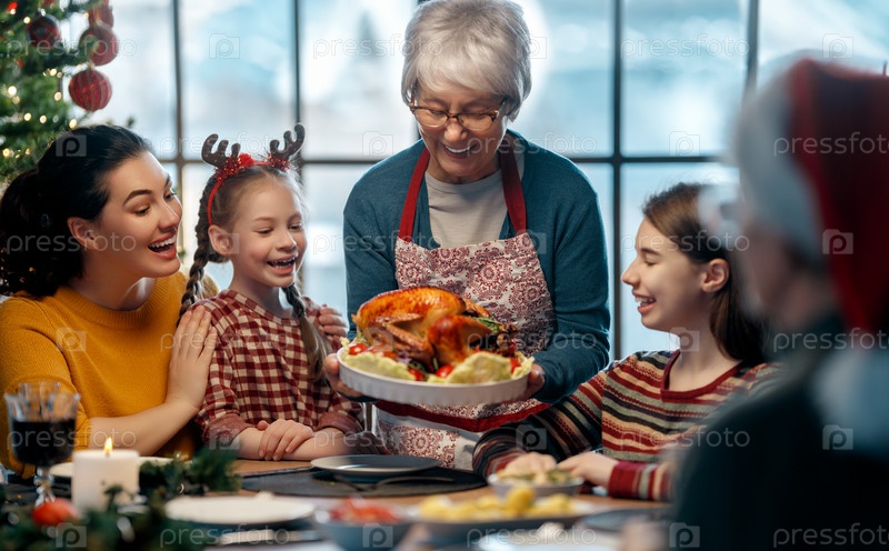 Семья празднует Рождество