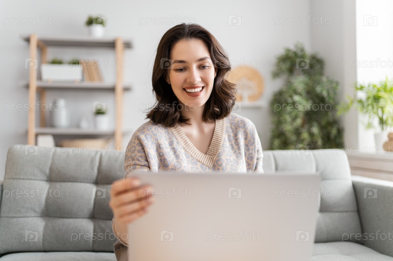 Молодая женщина с кем-то болтает
