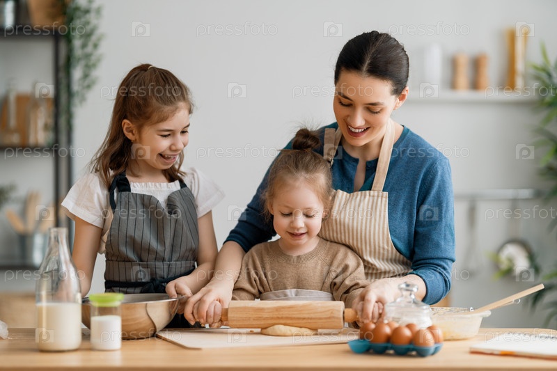 Семья вместе готовит выпечку