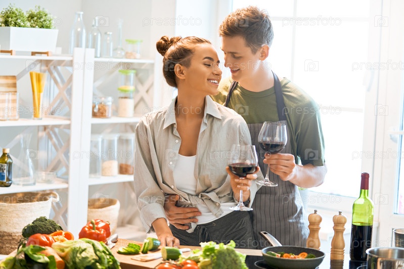 Влюбленная пара готовит настоящую еду