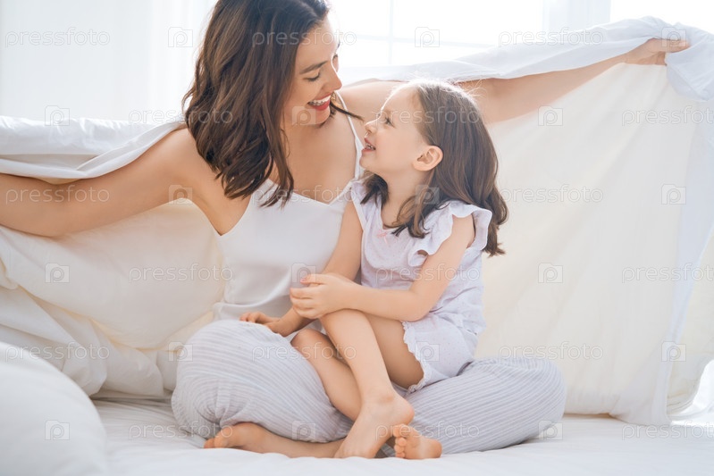 Девочка и ее мама наслаждаются солнечным утром