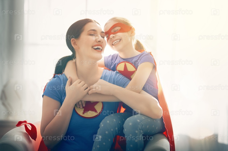 Девушка и мама в костюме супергероя