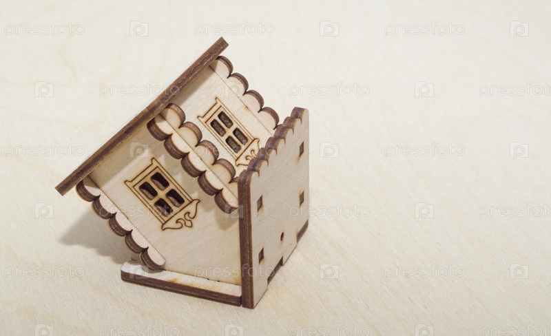 Деревянный домик на крыше на светлой поверхности