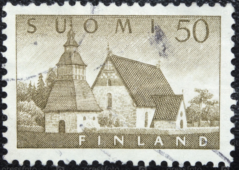Почтовая марка с гашением Финляндия 1963 год. Церковь Ламми