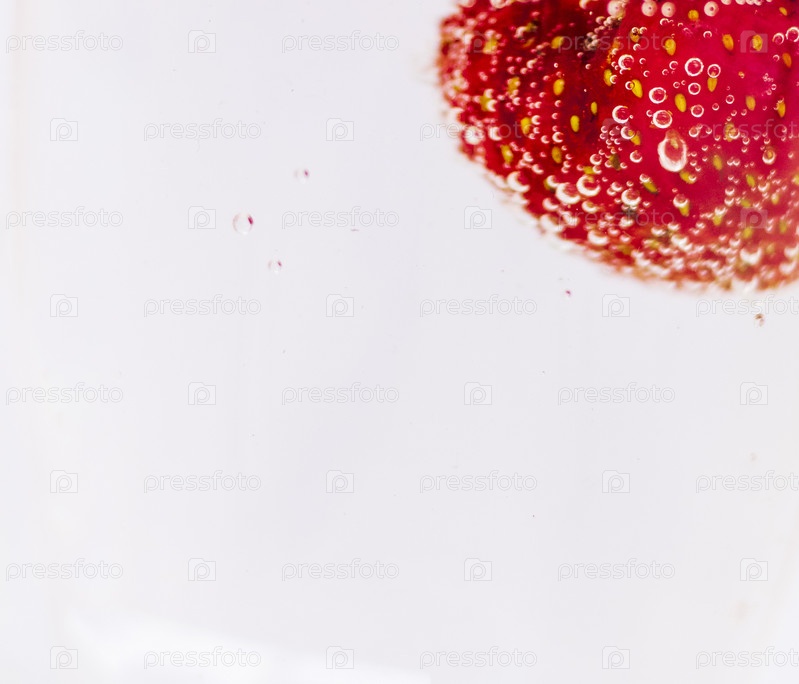 Крупный план клубники в воде. Кадр хорош для рекламы. Концепция