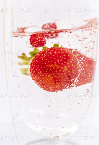Крупный план клубники и земляники в воде. Кадр хорош для рекламы. Концепция