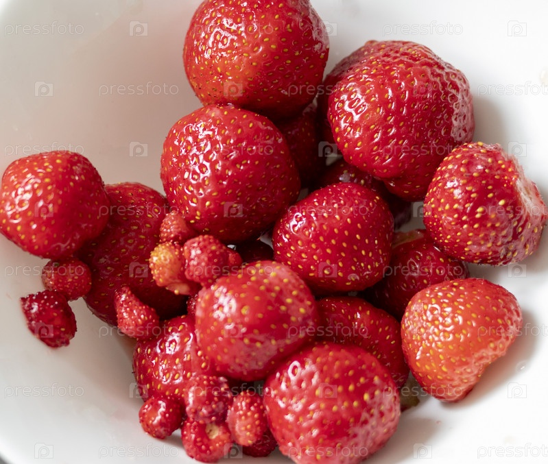 Крупный план клубники и земляники. Кадр хорош для рекламы. Концепция