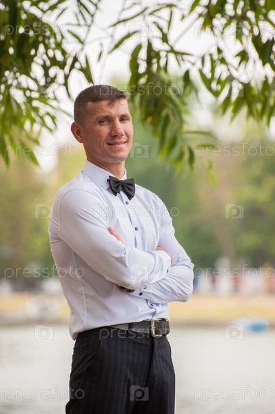 Мужчина, жених в классическом костюме и с бутоньеркой