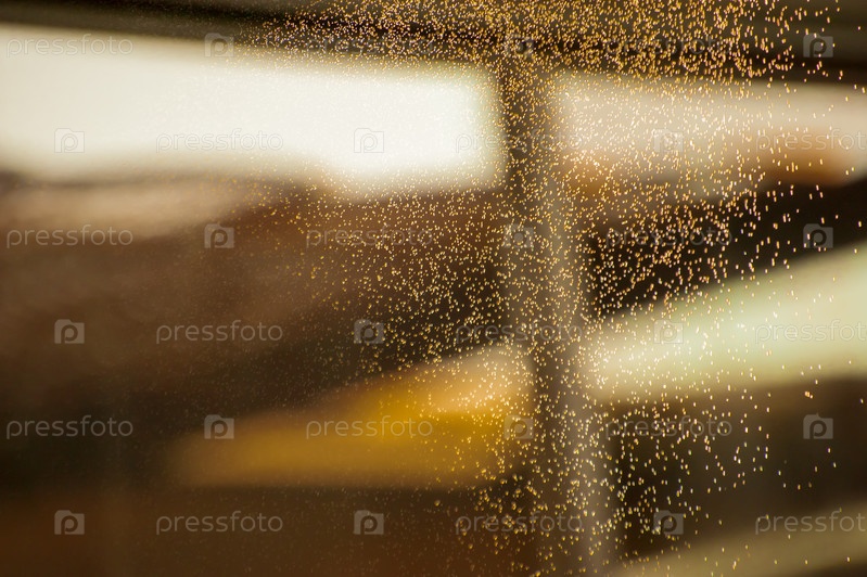 Абстрактное изображение золотой пыли или рыхлого песка. Маленькие капли воды в воздухе в виде пара или дыма