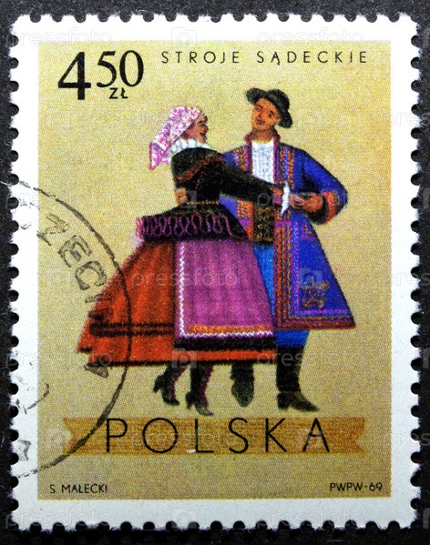 Почтовая марка с гашением Польша 1969 год. Народные костюмы из Новы-Сач, Краков