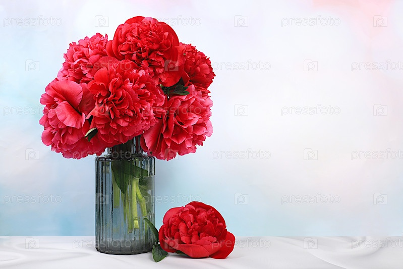 Абстрактная цветочная композиция, красивые бордовые пионы на элегантном фоне в вазе, весенний и летний баннер. Креативный современный букет. Открытка ко Дню матери, с днем рождения, свадьба, узор, выборочный фокус