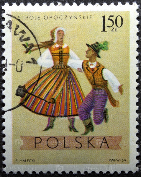 Почтовая марка с гашением Польша 1969 год. Народные костюмы из Опочно, Лодзь