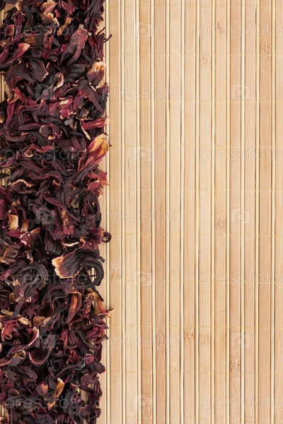 Сушеный гибискус на бамбуковой циновке