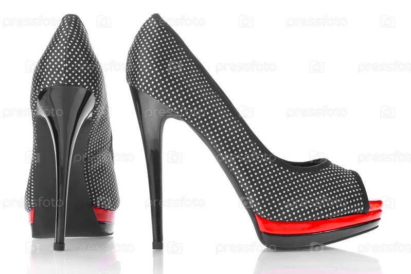 Женские туфли черно-красного цвета в белый горошек