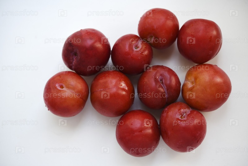 Красные сливы на белом фоне. Сливы на тарелке. Мытые фрукты