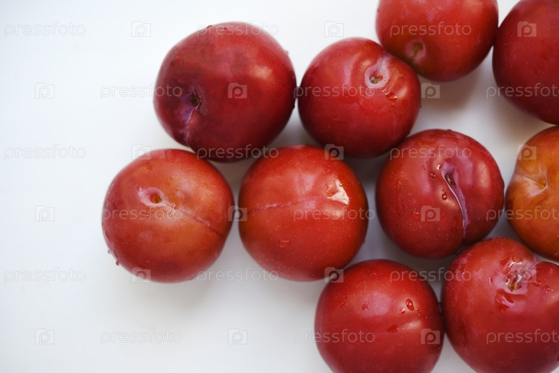 Красные сливы на белом фоне. Сливы на тарелке. Мытые фрукты