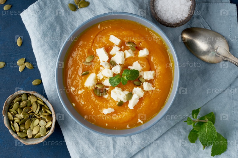 Суп-крем из тыквы с овечьим сыром, осенняя домашняя еда