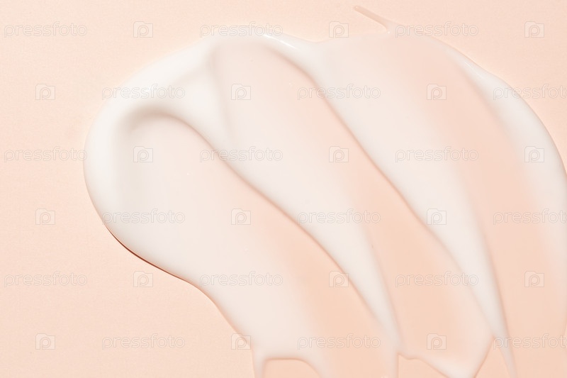 Большие мазки белого косметического крема на бежевом фоне. Текстура крема крупным планом