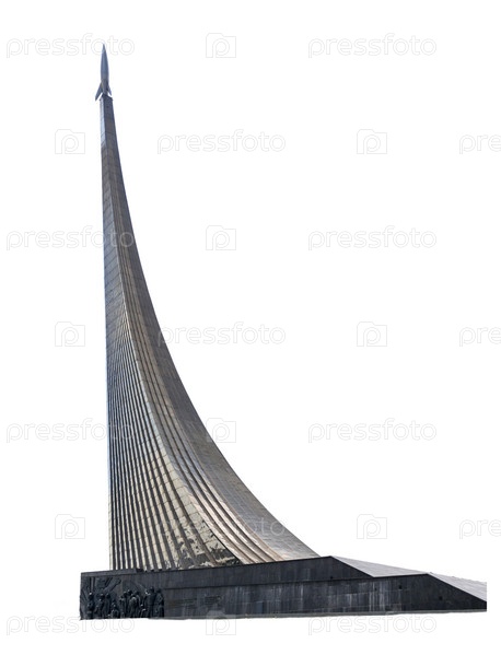 Памятник первой ракете, запущенной в космос Москва ВДНХ России, изолирован на белом фоне