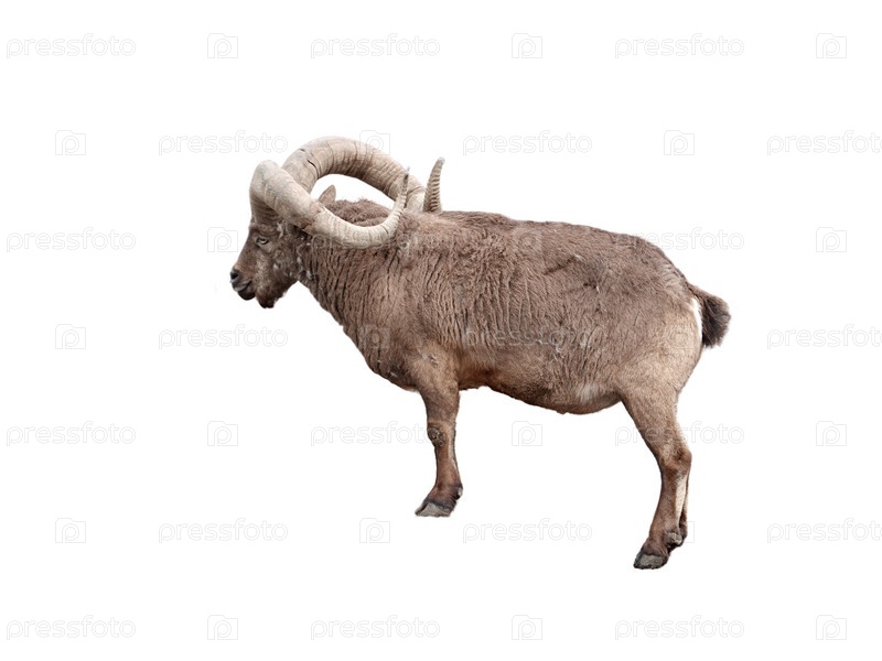 Молодой самец альпийского козерога на вершине горы изолирован на белом фоне