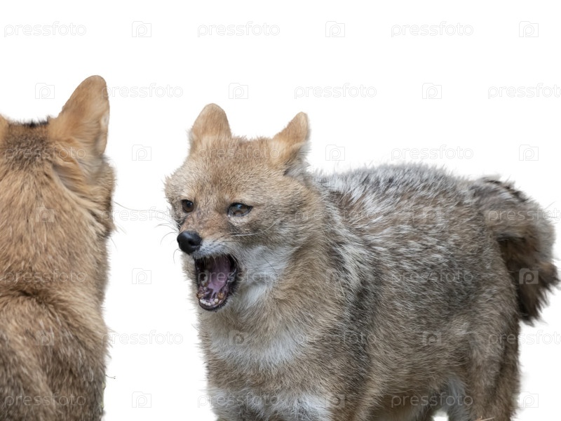 Красный шакал стоит изолированно на белом фоне