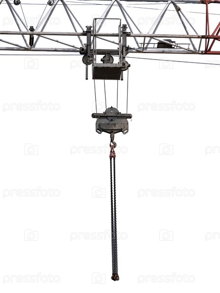 Стальной крюк крана с кабелем, изолированным на белом
