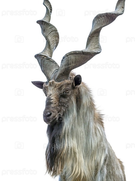 Молодой самец альпийского козерога на вершине горы изолирован на белом фоне