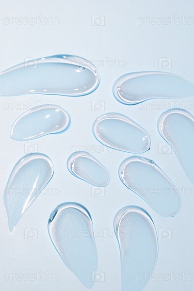 Прозрачный образец гелевой сыворотки с текстурой круглой формы, выделенной на синем фоне. косметический продукт научной лаборатории гиалуроновой кислоты, ретинола, коллагена