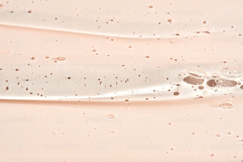 Прозрачная текстура жидкой гелевой сыворотки. Макияж и косметика текстура бежевый фон, средства по уходу за кожей и косметический крем