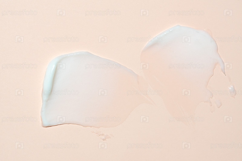 Косметический мазок кремовой текстуры на бежевом фоне. Пример крема для лица