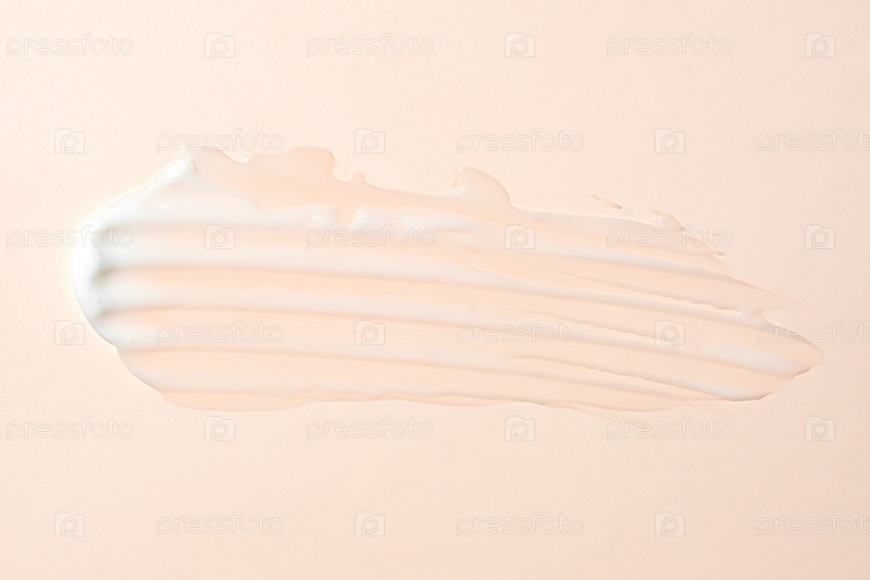 Один мазок белого косметического крема на бежевом фоне, идеально подходящий для ухода за кожей и красоты. Макрос с копией пространства