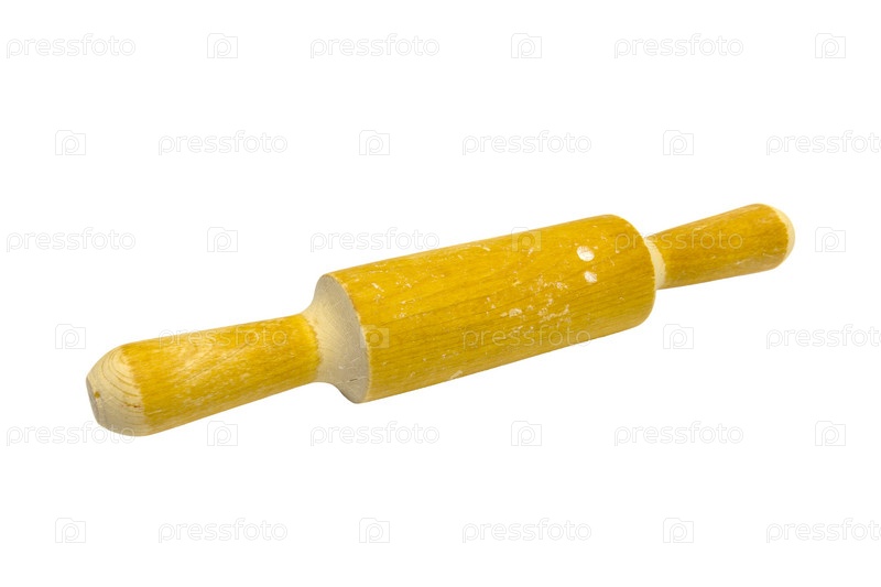 Деревянная скалка на белом фоне