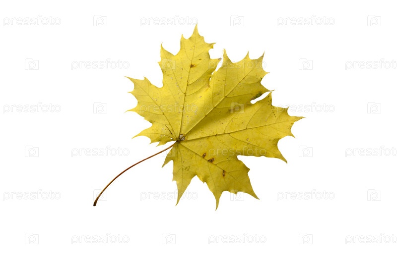 Кленовый лист как символ осени на изолированном белом фоне