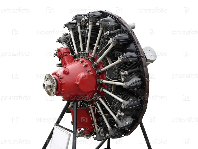 Авиационный автомобильный поршневой двигатель с расположением цилиндров изолирован на белом фоне