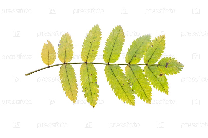 Листья Rowan Sorbus aucuparia выделены на белом фоне