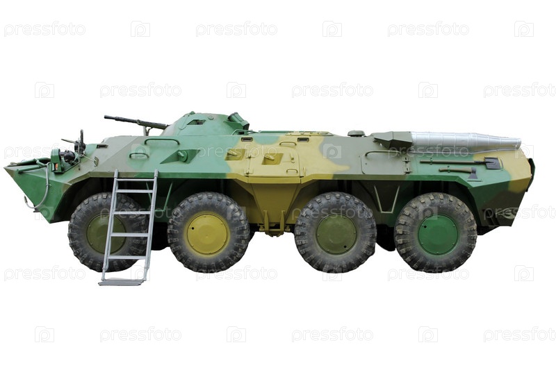 Старый зеленый танковый бронетранспортер изолирован на белом фоне